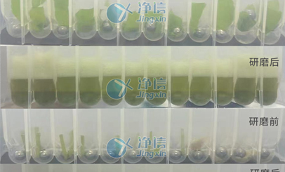 實(shí)驗(yàn)樣品:本次實(shí)驗(yàn)樣品為水稻葉片,此次選用凈信多樣品組織研磨進(jìn)行前處理操作,提取RNA實(shí)驗(yàn)。實(shí)驗(yàn)?zāi)康模褐参锖怂崽崛∈且粋€通過簡易化、可操作性的手段獲取“pure” DNA和RNA的過程。植物組織越幼嫩新鮮所含的次生代謝產(chǎn)物越少,隨著植物組織的逐漸成熟,次生代謝產(chǎn)物的含量會逐漸增多。