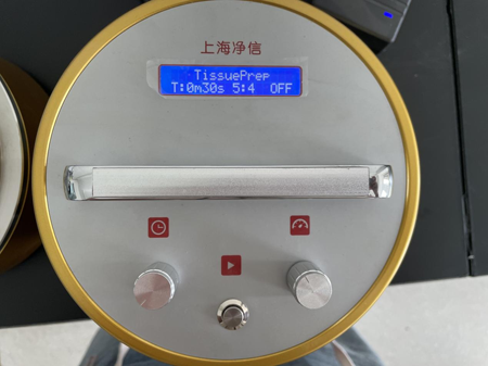 在實驗中,我們首先選取了一塊新鮮的豬肺組織,將其切成合適的大小。隨后,我們將豬肺組織放入研磨杵和研磨罐中,加入適量的介質和冷凍保護劑。這里需要注意以下幾點:(1) 選用合適的介質和保護劑,以便于后續(xù)實驗的進行;(2) 確保組織的大小適中,避免過度研磨或研磨不均;(3) 保持低溫研磨,減少組織損傷。