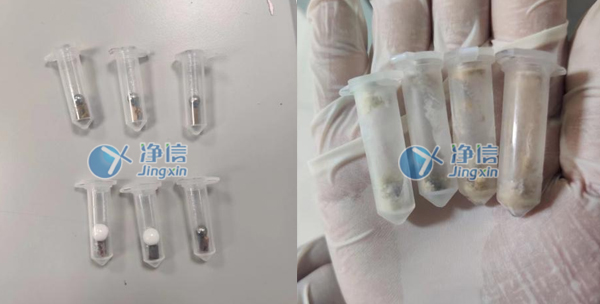 上圖為1分鐘的研磨效果,已經(jīng)完全研磨完成,達(dá)到老師預(yù)期效果。研磨管一次可以做24個(gè)樣品,經(jīng)過全自動(dòng)冷凍組織研磨儀的研磨處理后,蘋果樹枝條能夠快速被研磨成細(xì)小的顆粒,從而方便后續(xù)的分析。同時(shí),該研磨儀的運(yùn)行過程中不會(huì)引入外界污染,從而保證了樣品的純度。經(jīng)過多次了解和對(duì)比所以老師們選用凈信研磨儀代替人工處理。效率高,效果好。成功的解決了老師的研磨問題。