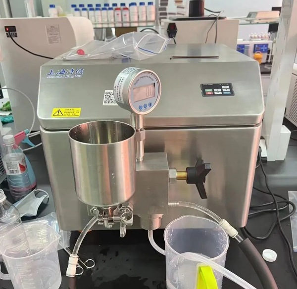 05.均質(zhì)結(jié)束達到效果后,即可泄壓將樣品接入準備好的容器中