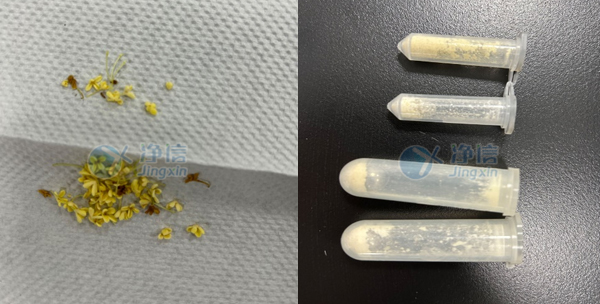 1、準(zhǔn)備2ml*24金屬適配器一套,2號(hào)研磨珠,先將桂花樣本分解成小塊。