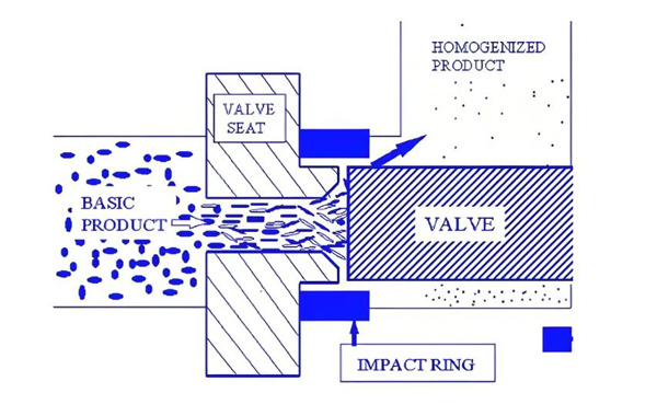 高壓物料通過均質(zhì)閥組件時,產(chǎn)生以下三種均質(zhì)效應(yīng):
