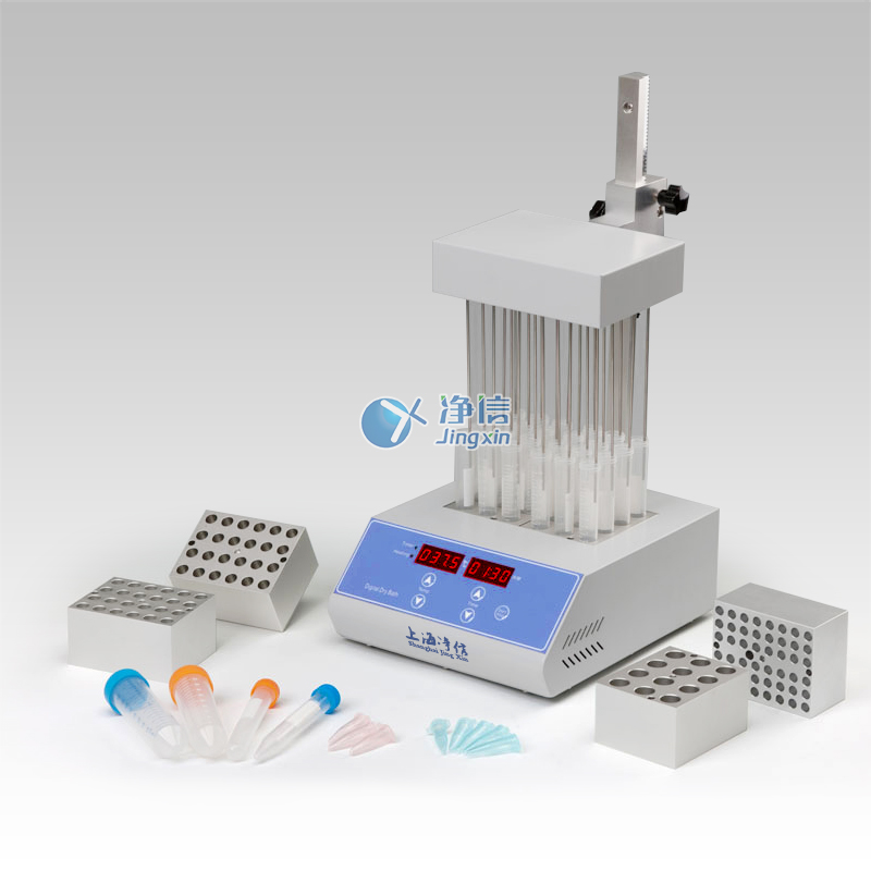 JXDC-10 nitrogen purging instrument adopts microcomputer and PID fuzzy control technology, and uses high-purity aluminum material as the heat transfer medium to replace the traditional water bath device. It has the characteristics of convenient use, large temperature control range, and high precision. Its working principle is to blow nitrogen or air to the surface of the heated sample quickly, continuously and controllably, and set the heating temperature according to the evaporation speed and boiling point of the concentrated solvent to achieve rapid concentration of a large number of samples.