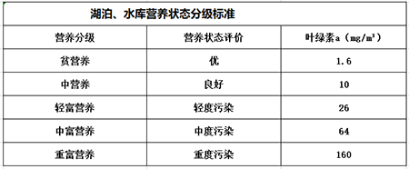 中國(guó)環(huán)境科學(xué)研究院李子成在《中國(guó)湖庫(kù)營(yíng)養(yǎng)現(xiàn)狀調(diào)查分析》中對(duì)湖泊、水庫(kù)的營(yíng)養(yǎng)狀態(tài)進(jìn)行了分級(jí)。