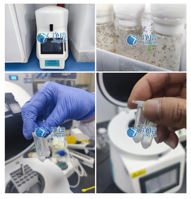 圖一:上海凈信JXFSTPRP-24L;圖二: 實(shí)驗(yàn)中所使用的實(shí)驗(yàn)材料;圖三為樣品研磨前,圖四為樣品研磨后效果圖。