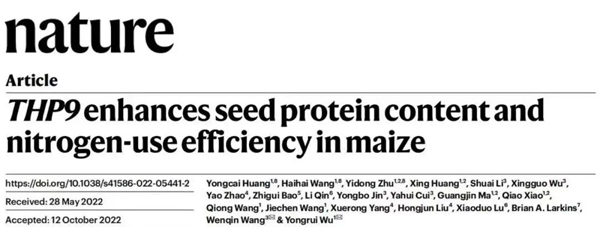 北京時間2022年11月17日,中國科學(xué)院分子植物科學(xué)****中心巫永睿研究團隊與上海師范大學(xué)王文琴研究團隊合作在Nature上發(fā)表了題為 “THP9 enhances seed protein content and nitrogen-use efficiency in maize”的研究論文。