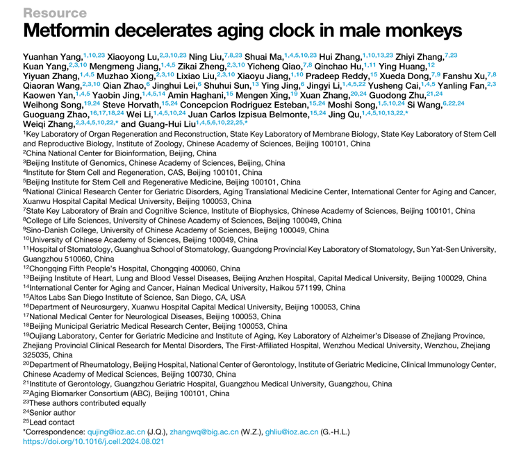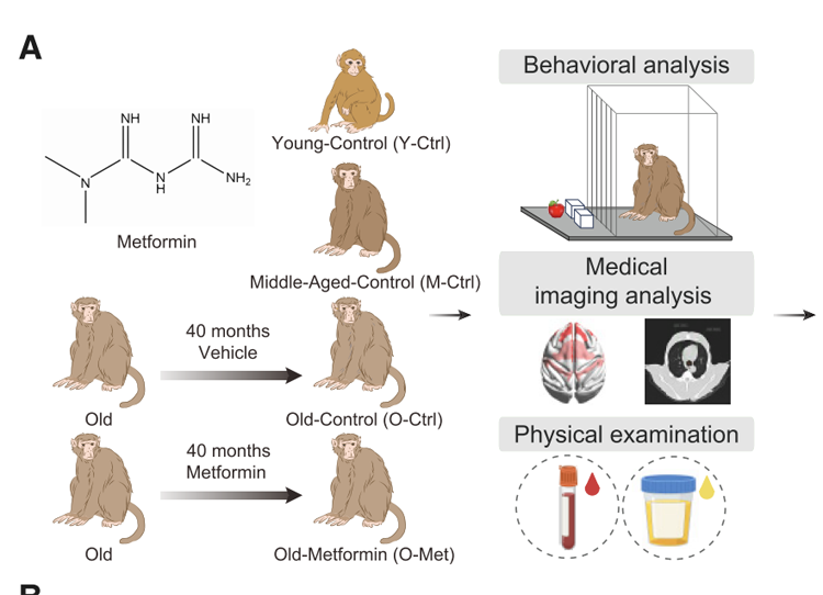 經(jīng)過多年的努力,研究團隊取得了重要發(fā)現(xiàn)。他們證實,長期服用二甲雙胍可減緩靈長類動物的衰老進程,改善認(rèn)知功能,并顯著降低多種衰老相關(guān)指標(biāo)。這一成果為二甲雙胍在人類抗衰老治療中的應(yīng)用提供了重要的理論依據(jù)。值得一提的是,該研究還構(gòu)建了一個基于多維度生物標(biāo)志物的靈長類衰老時鐘度量體系,為未來衰老干預(yù)措施的效果評估提供了新的標(biāo)準(zhǔn)。