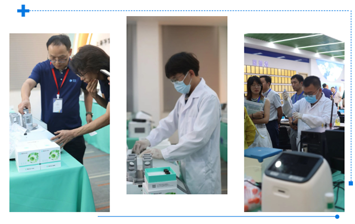 代理商們分組參觀,在技術(shù)人員的操作下,體驗了“樣本剪碎→酶體系配置→恒溫酶解→細胞過濾→活性檢測”的全流程操作。實操過程中,技術(shù)團隊針對不同區(qū)域客戶的需求特點,提供定制化建議:比如來不及立即制備的樣本,推薦“高效組織保存液”保存后,再進行實驗;針對“批量樣本處理”需求,搭配批量解離單細胞懸液制備儀進行。貼心準(zhǔn)備了小規(guī)格試用裝,簡潔的操作說明書,免費試用無憂。