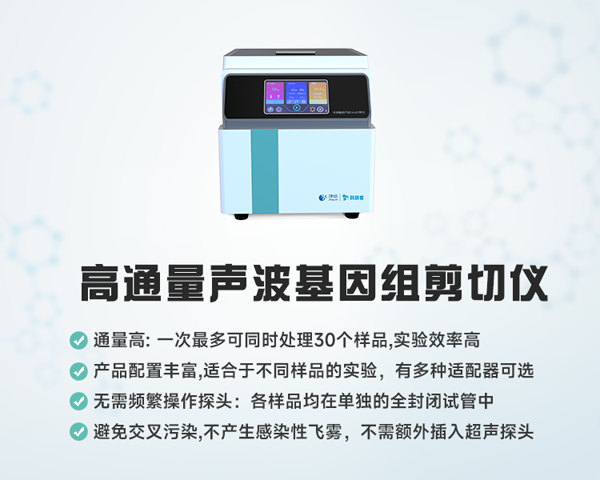凈信高通量聲波基因組剪切儀它以其效率高的特點(diǎn),解決了基因組學(xué)樣品前處理的難題。其優(yōu)勢(shì)體現(xiàn)在: