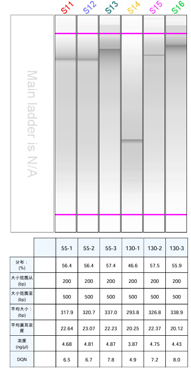 上圖在200-500bp 目的片段最高分別達到57.5% 和58.2%