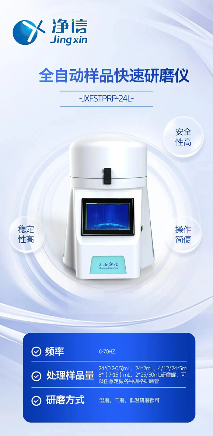 工欲善其事,必先利其器。在食品安全檢測(cè)領(lǐng)域,前處理的效率和精度直接影響著數(shù)據(jù)質(zhì)量與監(jiān)管效能。凈信全自動(dòng)樣品快速研磨儀,以其在樣品前處理環(huán)節(jié)展現(xiàn)出的均勻、低溫、安全的優(yōu)勢(shì),正成為眾多檢測(cè)實(shí)驗(yàn)室提升紅薯粉條等食品農(nóng)殘檢測(cè)能力的得力助手。