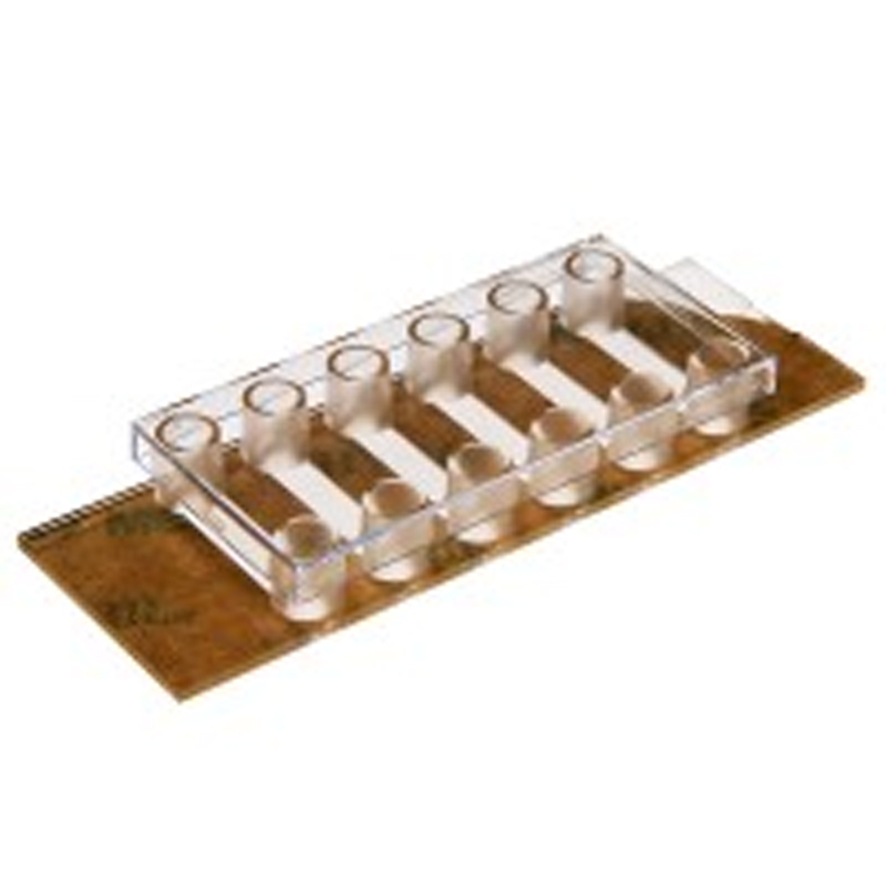 無(wú)底6通道載玻片用于細(xì)胞培養(yǎng),帶有自黏底部,從而可以粘上底物