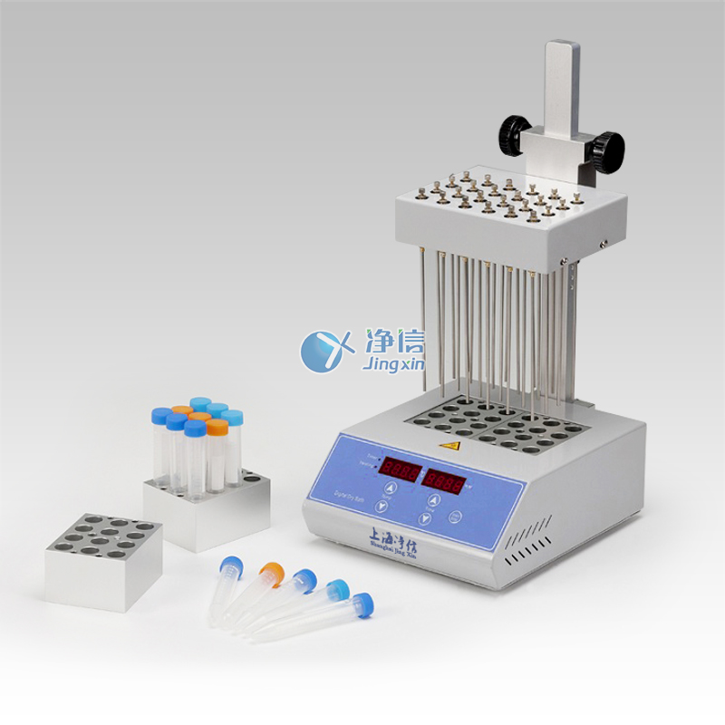JXDC-400系列氮氣吹掃儀是采用微電腦處理和PID控制方式結合而形成的高精度溫度控制儀器, 其工作原理是將氮氣快速、連續(xù)、可控地吹到加熱樣品表面,根據(jù)被濃縮溶劑的蒸發(fā)速度和沸點,設定加熱溫度,實現(xiàn)大量樣品的快速濃縮。