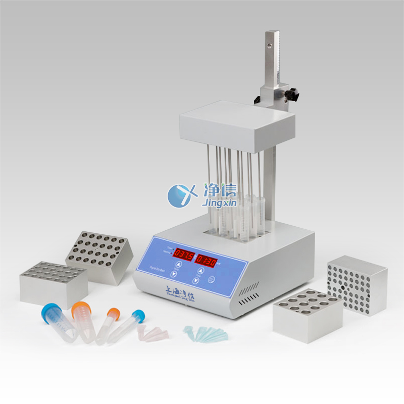 JXDC-10氮氣吹掃儀采用微電腦和PID模糊控制技術(shù),利用高純度鋁材料做為導(dǎo)熱介質(zhì),以代替?zhèn)鹘y(tǒng)的水浴裝置,具有使用方便、控溫范圍大、精度高等特點。其工作原理是將氮氣或空氣快速、連續(xù)、可控地吹到加熱樣品表面,并根據(jù)被濃縮溶劑的蒸發(fā)速度和沸點,設(shè)定加熱溫度,實現(xiàn)大量樣品的快速濃縮。