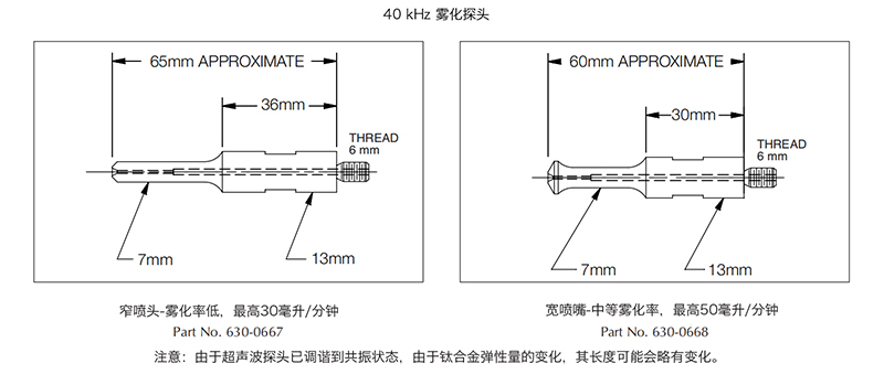 變幅桿: | 7 mm,1根 (請指定探頭部件號,除非另有說明,否則霧化器將隨附有霧化探針,零件號630-0667) |
