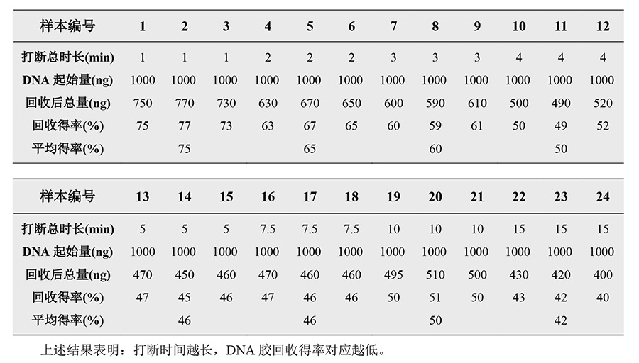 可對100bp-5kb范圍的DNA片段進(jìn)行高質(zhì)量的剪切,可得到高度重復(fù)的DNA剪切結(jié)果,并且DNA片段緊密分布在指定的大小范圍內(nèi),不同初始樣本量均能得到一致性的片段。