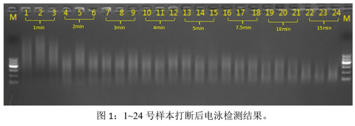 實驗結(jié)果表明:(1) 隨著打斷時間的增加,打斷片段的大小也隨之變?。?2) 相同打斷條件下,打斷效果的重復性和均一性良好。